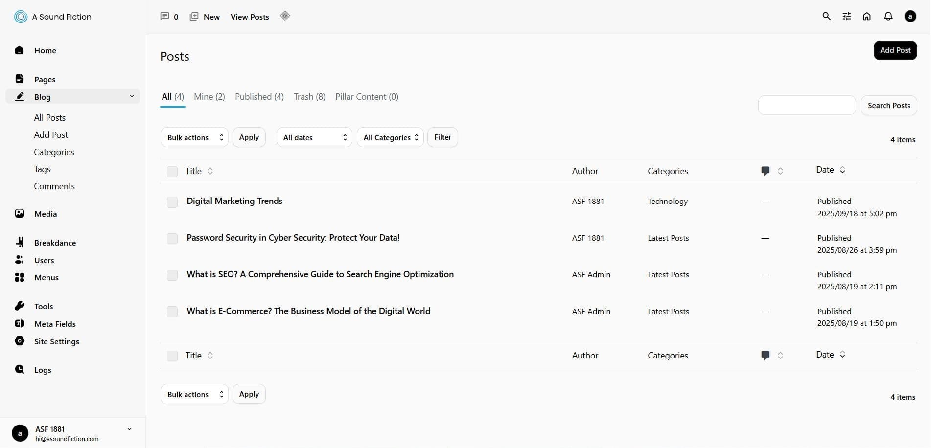 The Blog (Posts) section is the area where you can regularly share content (news, articles, or announcements) on your site.