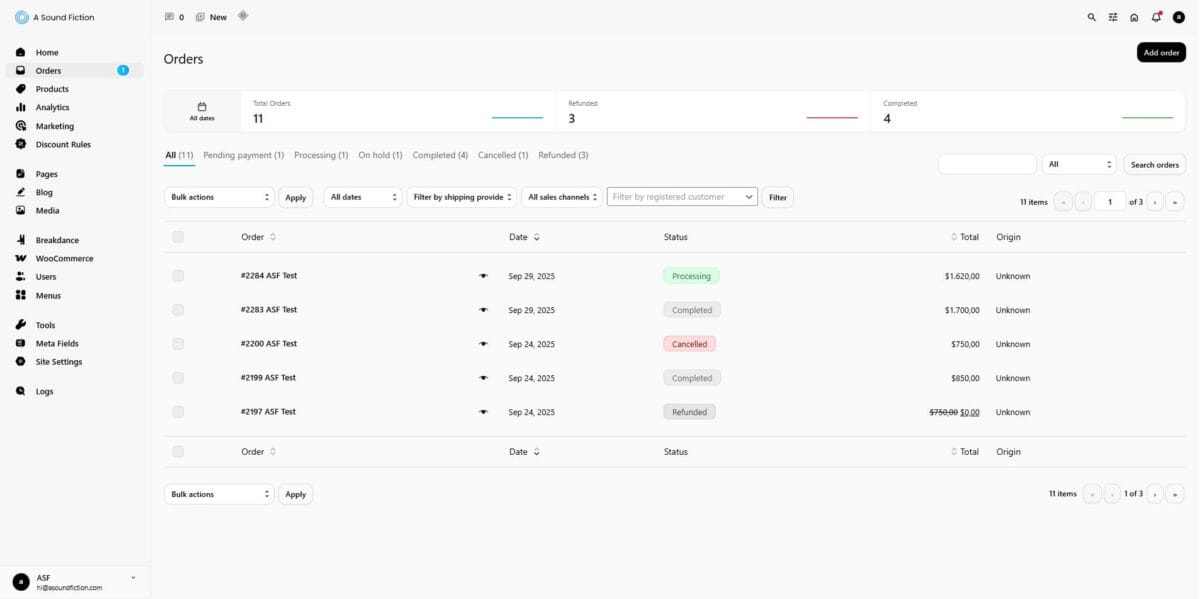 After the refund is processed, the order status is automatically updated to “Refunded“.