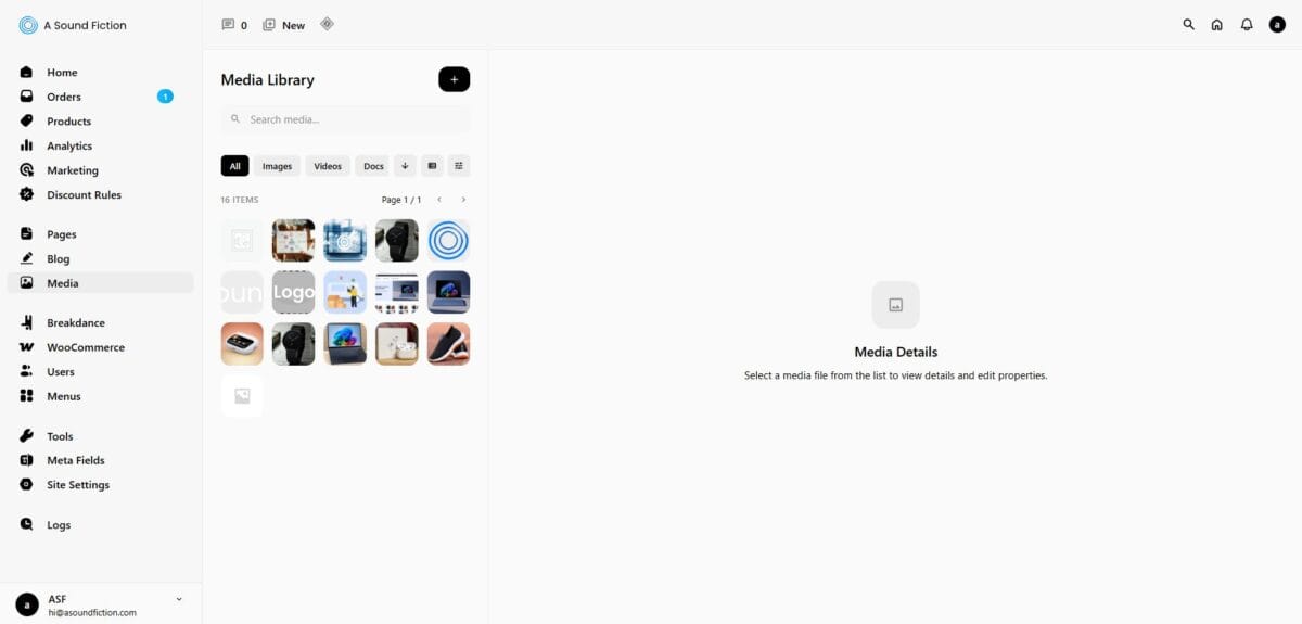 The Media section allows you to manage the image, video, audio, and document files used on your site.