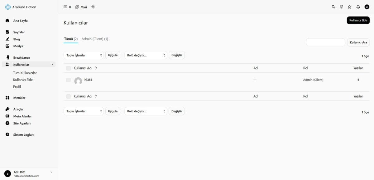Kullanıcılar bölümü, sitenize kayıtlı olan tüm kullanıcıları görüntülemenizi, yönetmenizi, yeni kullanıcı eklemenizi sağlar.