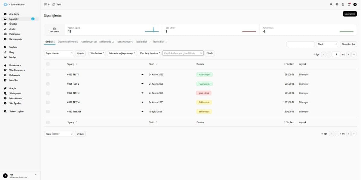 Bu sayede tüm siparişler tek panelden takip edilebilir.